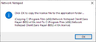 When prompted, click OK to copy the license file to the application folder.