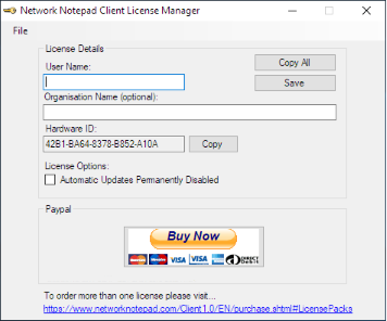 To continue using Network Notepad Client after the 30 day evaluation period, you must purchase a license for each PC that you install Network Notepad Client on to.